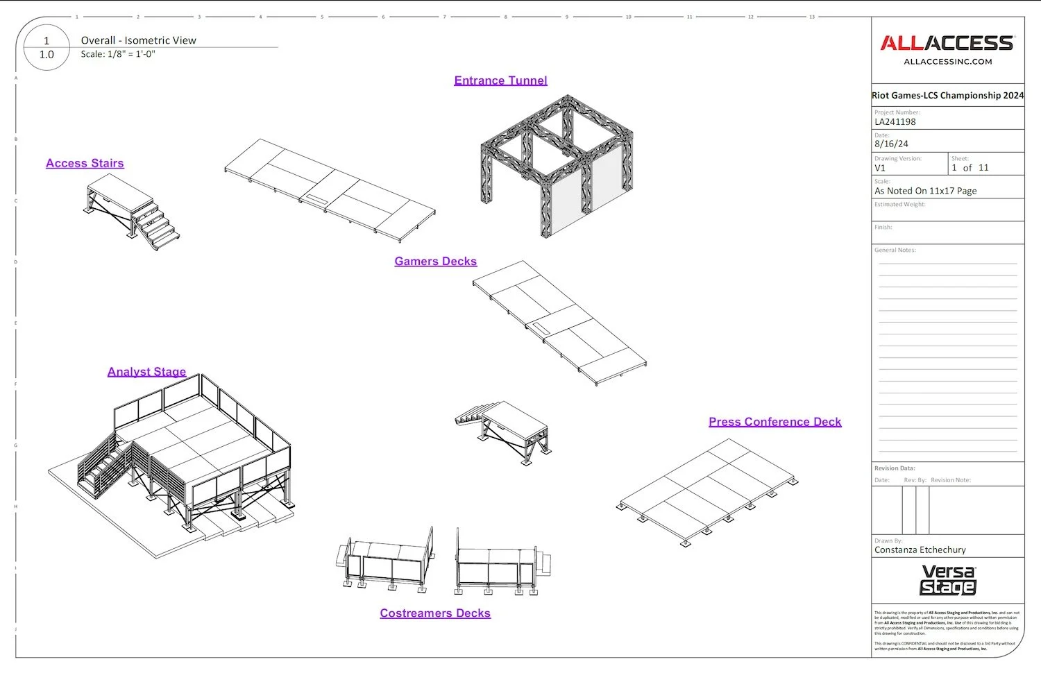 All Access Staging and Productions Asistente de Diseño TécnicoCalifornia, EEUUMayo a agosto de 2024Ir al sitio web de All Access Kehlani Crash Tour Dibujos técnicos Ver tamaño completo Ver tamaño completo Ver tamaño completo Construcción Ver tamaño completo Concierto Ver tamaño completo Riot Games LA Dibujos técnicos Ver tamaño completo Ver tamaño completo Video Music Awards Dibujos técnicos Ver tamaño completo Ver tamaño completo Montaje Ver tamaño completo U.S. Open of SurfingDibujo técnico Ver tamaño completo